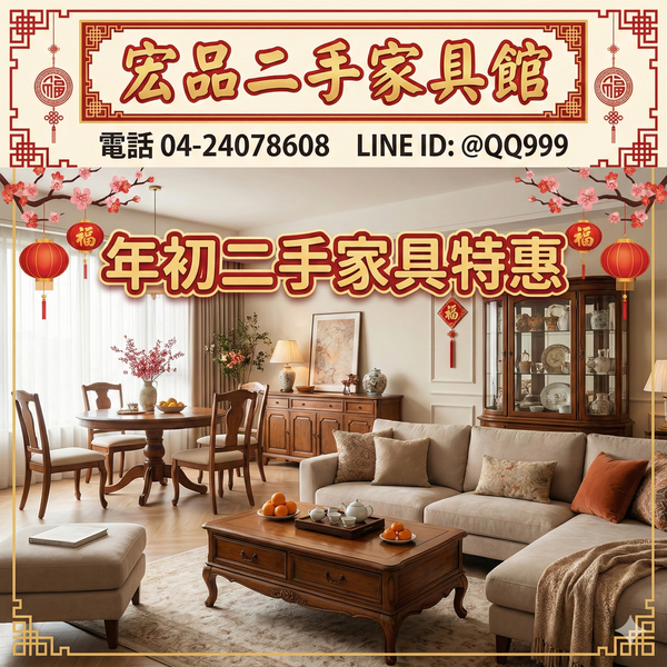 🎉 宏品二手家具館|年初特惠開跑 🎉 新年換新家,用最划算的價格把好家具帶回家! 新的一年,家也要煥然一新! 宏品二手家具館為回饋長期支持的老顧客,也迎接嶄新的開始,特別推出【年初特惠活動】,多樣優質二手家具全面優惠,數量有限、售完為止,錯過真的要再等一年! 我們堅持「嚴選來源、專業整理、價格實在」的經營理念,每一件家具皆經過檢查、清潔與整理,讓您用不到新品的價格,買到耐用又實用的好家具,不論是租屋族、小家庭、公司行號、學生宿舍都非常適合。 🪑 年初特惠販賣家具品項一覽(持續更新中) 🔸 客廳家具 沙發(布沙發/皮沙發/L型沙發/沙發床) 電視櫃 茶几、大小邊几 展示櫃、收納櫃 客廳收納櫃、矮櫃 🔸 餐廳家具 餐桌(實木餐桌/玻璃餐桌/折疊餐桌) 餐椅(單椅/成套餐椅) 餐邊櫃 碗盤收納櫃 🔸 臥室家具 單人床架/雙人床架/加大床架 床墊(視現場庫存) 衣櫃(推門式/開門式) 床頭櫃 化妝台、化妝椅 🔸 書房 / 辦公家具 書桌/電腦桌 書櫃、文件櫃 辦公桌 辦公椅 會議桌、會議椅 🔸 收納與其他家具 鞋櫃 斗櫃 多功能收納櫃 商用家具(店面桌椅、展示櫃) 💰 年初限定優惠重點 ✔ 多項家具 年初特價出清 ✔ 買多件享 組合優惠 ✔ 租屋族、學生族群 高CP值首選 ✔ 現場看貨、現場選,品質看得見 🚚 服務貼心更放心 專人諮詢,協助挑選適合家具 可協助安排搬運配送(依距離另計) 店內款式多、流動快,建議提前來選 📣 提醒您 二手家具皆為單一現品,喜歡就要快! 年初特惠期間人潮較多,早來早選、先到先得,錯過可能就被別人搬回家了! 📍 宏品二手家具館 電話:04-24078608 地址:台中市大里區德芳路三段79號 誠實經營、價格透明,讓每一位客人都能輕鬆打造理想生活空間。 年初換家具,就到宏品二手家具館!